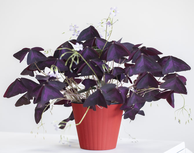 L’Oxalis pourpre appelé aussi « Le trèfle rouge » est une plante ultra tendance pour sa couleur automnale qui apporte une touche chaleureuse, pour ses feuilles aux formes délicates,